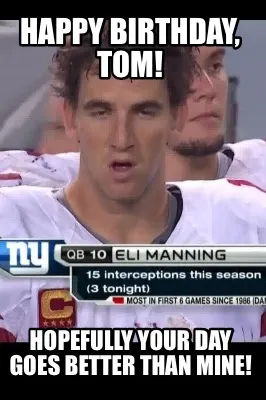 Create Funny Happy Birthday, Tom! Hopefully your day goes better than mine! Meme