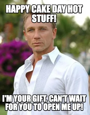 Create Happy Cake day Hot stuff! I'm your gift. Can't wait for you to open me up! Meme