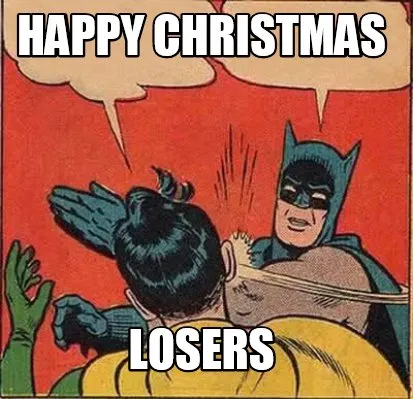 Make your own "Funny Happy christmas losers" meme with MemeCreator's free online meme generator. Add text, stickers, and drawings — then download or share. No watermark, no sign-up required.