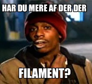 Make your own "Har du mere af der der Filament?" meme with MemeCreator's free online meme generator. Add text, stickers, and drawings — then download or share. No watermark, no sign-up required.