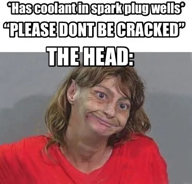 Create Funny *Has coolant in spark plug wells* “Please dont be cracked” The Head: Meme