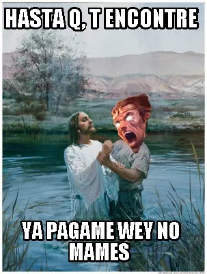 Make your own "Funny hasta q, t encontre ya pagame wey no mames" meme with MemeCreator's free online meme generator. Add text, stickers, and drawings — then download or share. No watermark, no sign-up required.