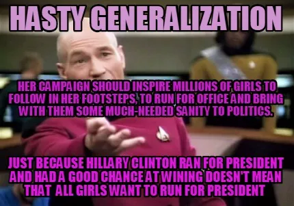 Hasty Generalization Just Because Hillary Clinton Ran For President And Had A Go Meme Template