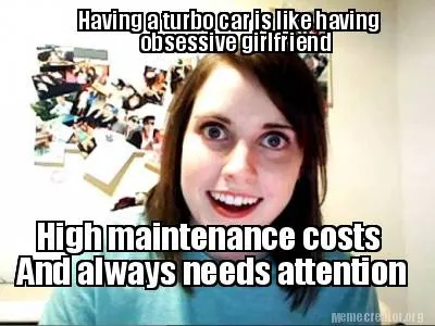 Create Funny Having a turbo car is like having obsessive girlfriend High maintenance costs A Meme
