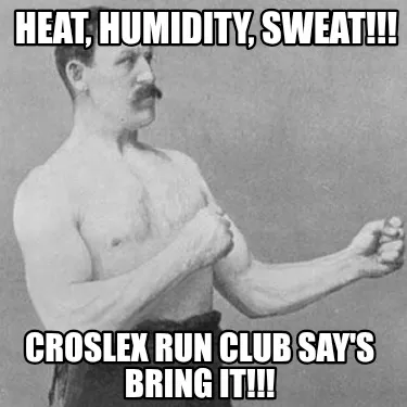 Create Heat, humidity, sweat!!! Croslex run club say's bring it!!! Meme