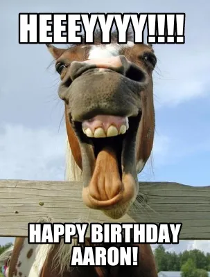 Make your own "HEEEYYYY!!!! Happy Birthday Aaron!" meme with MemeCreator's free online meme generator. Add text, stickers, and drawings — then download or share. No watermark, no sign-up required.