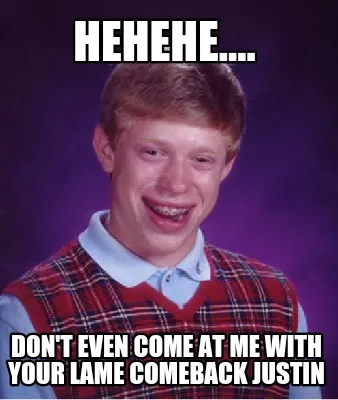 Hehehe.... Don't even come at me with your lame comeback Justin Meme Template