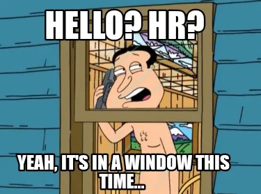 Hello? HR? Yeah, it's in a window this time... Meme Template