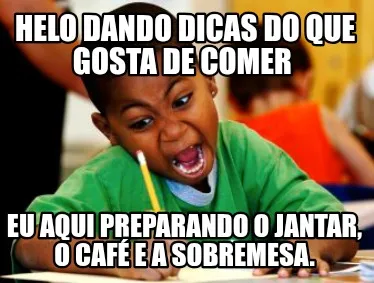 Create Funny Helo dando dicas do que gosta de comer Eu aqui preparando o jantar, o café e a Meme