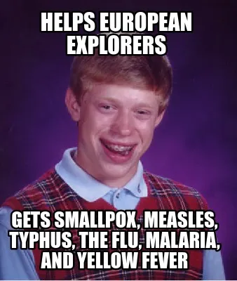 Funny Helps European explorers gets smallpox, measles, typhus, the flu, malaria, and y Meme Template