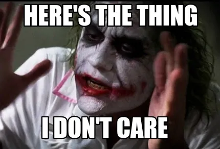 Make your own "Here's the thing I don't care" meme with MemeCreator's free online meme generator. Add text, stickers, and drawings — then download or share. No watermark, no sign-up required.