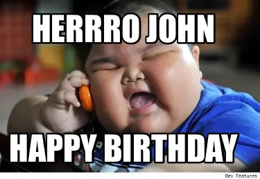 Make your own "Herrro John Happy birthday" meme with MemeCreator's free online meme generator. Add text, stickers, and drawings — then download or share. No watermark, no sign-up required.