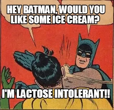 Create Funny Hey Batman, would you like some ice cream? I'm lactose intolerant!! Meme