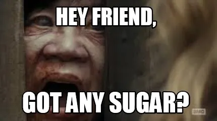 Make your own "Hey friend, got any sugar?" meme with MemeCreator's free online meme generator. Add text, stickers, and drawings — then download or share. No watermark, no sign-up required.