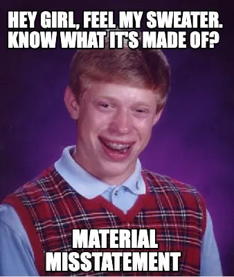 Hey Girl, Feel my sweater. Know what it's made of? Material Misstatement Meme Template