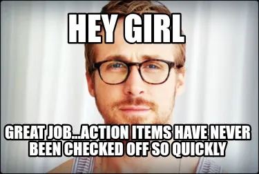 Create Hey Girl Great job...Action items have never been checked off so quickly Meme