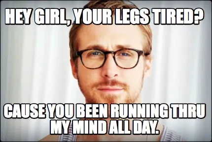 Create Hey girl, Your Legs tired? Cause you been running thru my mind all day. Meme