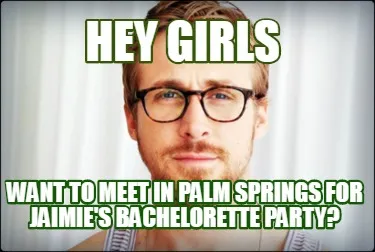 Create Hey Girls Want to meet in Palm Springs for jaimie's bachelorette party? Meme