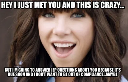 Funny Hey I just met you And this is crazy... But I’m going to answer IEP questions Meme Template