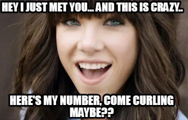Hey I just met you... and this is crazy.. here's my number, come curling maybe?? Meme Template