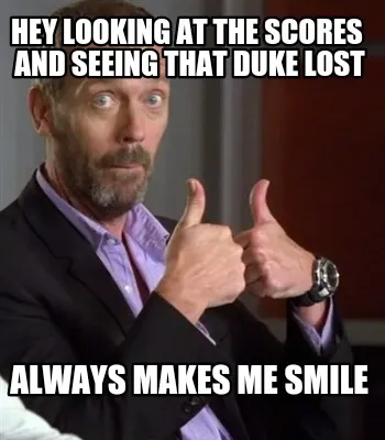 Hey looking at the scores and seeing that Duke lost Always makes me smile Meme Template