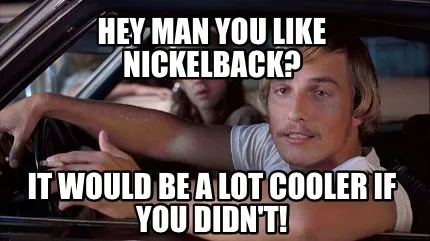 Create Funny Hey man you like Nickelback? It would be a lot cooler if you didn't! Meme