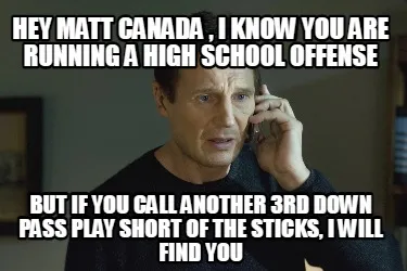 Hey matt canada , I know you are running a high school offense But if you call a Meme Template