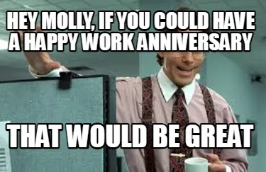 Hey Molly, if you could have a happy work anniversary that would be great Meme Template