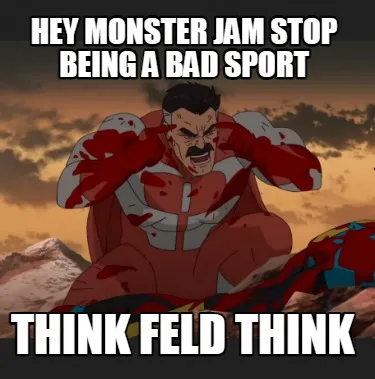 Hey monster jam stop being a bad sport think feld think Meme Template