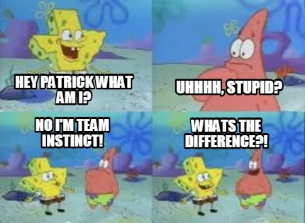 Hey Patrick What Am I No Im Team Instinct Uhhhh Stupid Whats The Difference Meme Template