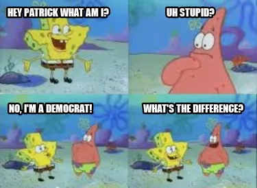 Hey Patrick what am I? Uh stupid? No, I'm a democrat! Meme Template