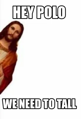 Make your own "HEY POLO WE NEED TO TALL" meme with MemeCreator's free online meme generator. Add text, stickers, and drawings — then download or share. No watermark, no sign-up required.