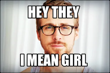 Make your own "Hey they I mean girl" meme with MemeCreator's free online meme generator. Add text, stickers, and drawings — then download or share. No watermark, no sign-up required.