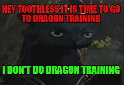 Hey Toothless it is time to go to dragon training I don't do Dragon Training Meme Template