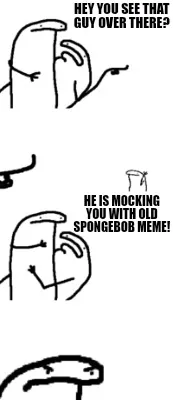 Create Funny Hey you see that guy over there? He is mocking you with old spongebob Meme