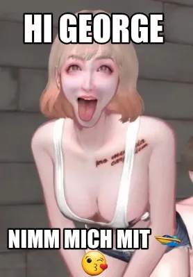 Make your own "Funny Hi George nimm mich mit ???? ????" meme with MemeCreator's free online meme generator. Add text, stickers, and drawings — then download or share. No watermark, no sign-up required.