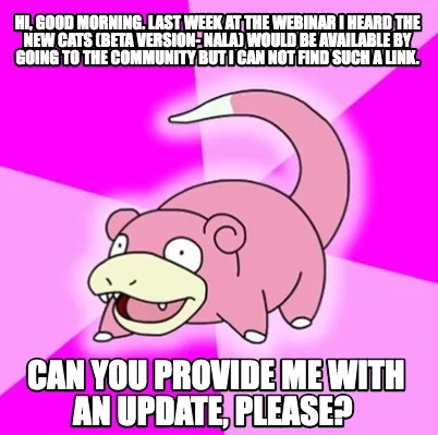 Create Funny Hi, good morning. Last week at the webinar I heard the new CATS (beta version- N Meme