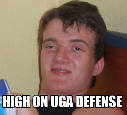 Make your own "High on UGA defense" meme with MemeCreator's free online meme generator. Add text, stickers, and drawings — then download or share. No watermark, no sign-up required.