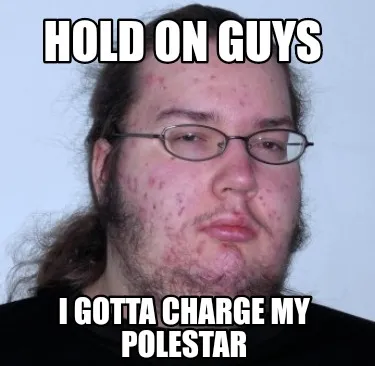 Hold on guys I gotta charge my polestar Meme Template