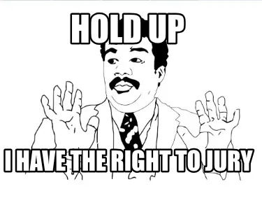 Make your own "Hold up I have the right to jury" meme with MemeCreator's free online meme generator. Add text, stickers, and drawings — then download or share. No watermark, no sign-up required.