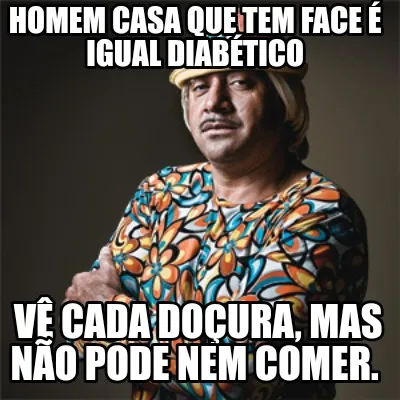 Make your own "Funny HOMEM CASA QUE TEM FACE É IGUAL DIABÉTICO VÊ CADA DOÇURA, MAS NÃO PODE NEM" meme with MemeCreator's free online meme generator. Add text, stickers, and drawings — then download or share. No watermark, no sign-up required.