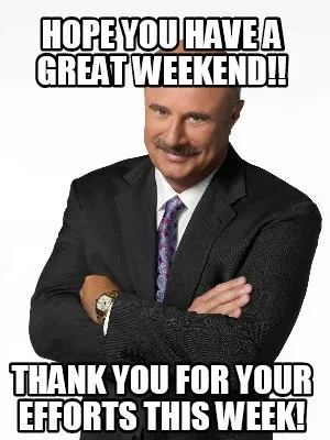 Hope you have a great weekend!! Thank you for your efforts this week! Meme Template