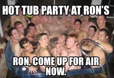 Create Hot tub party at Ron’s Ron, come up for air now. Meme