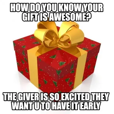How do you know your gift is awesome? The giver is so excited they want u to hav Meme Template