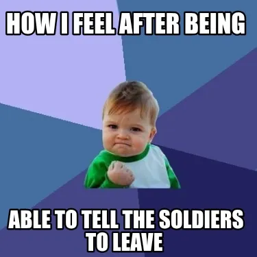 Funny How I feel after Being able to tell the soldiers to leave Meme Template