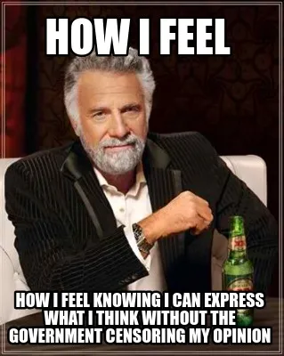Create How I feel how i feel knowing I can express what I think without the government Meme