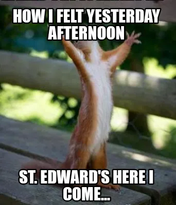 Funny How I felt yesterday afternoon St. Edward's here I come... Meme Template