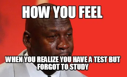Make your own "Funny HOW YOU FEEL WHEN YOU REALIZE YOU HAVE A TEST BUT FORGOT TO STUDY" meme with MemeCreator's free online meme generator. Add text, stickers, and drawings — then download or share. No watermark, no sign-up required.