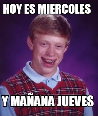 Make your own "Hoy es miercoles y mañana jueves" meme with MemeCreator's free online meme generator. Add text, stickers, and drawings — then download or share. No watermark, no sign-up required.