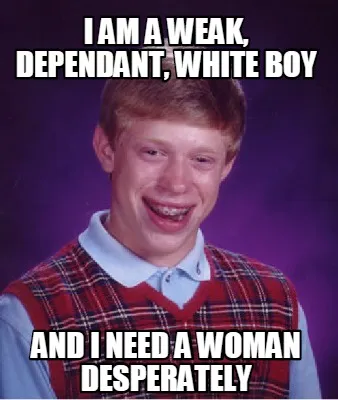 Create Funny i am a weak, dependant, white boy and i need a woman desperately Meme
